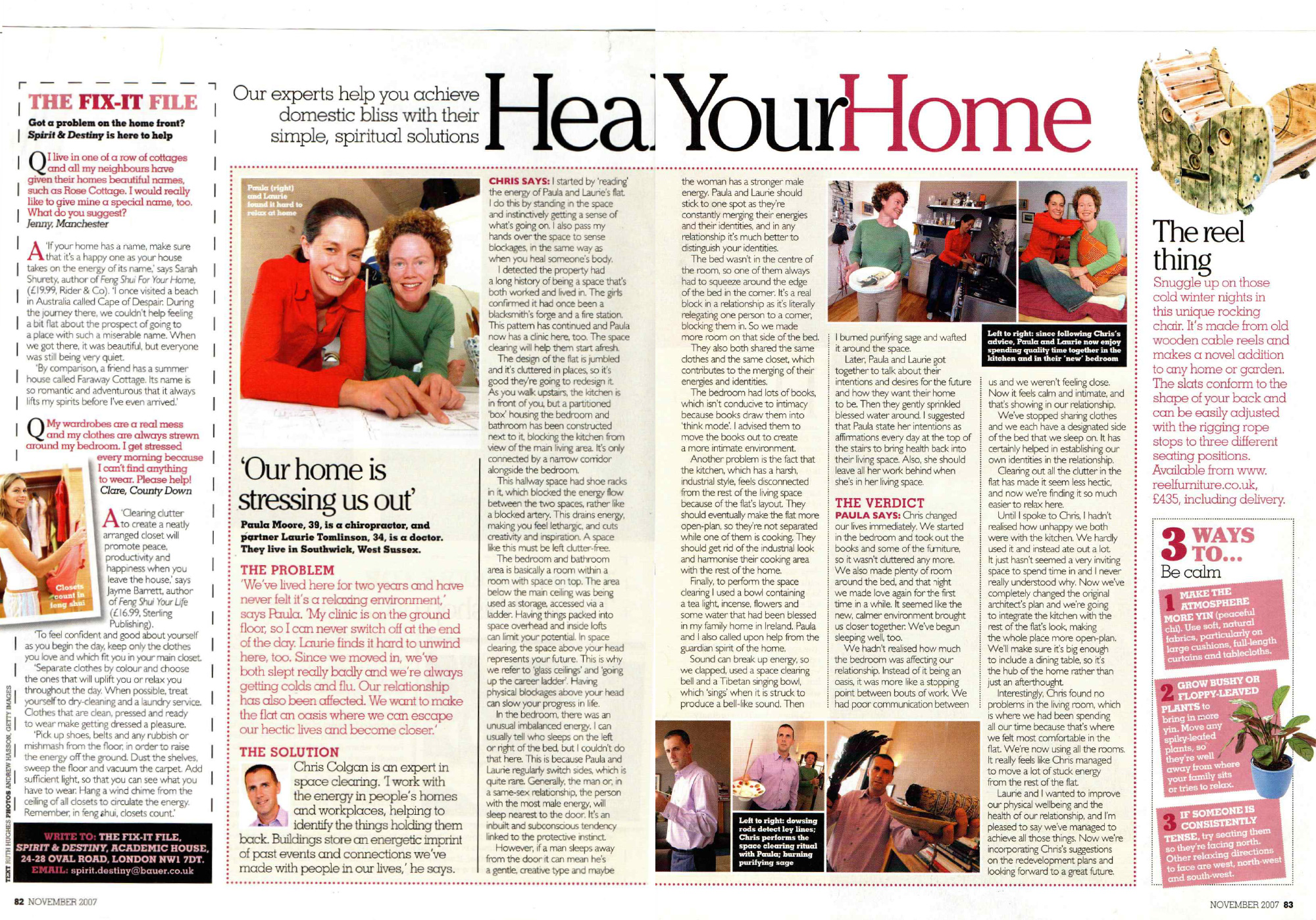 CHRIS SAYS: I started by ‘reading’ the and energy of Paula and Laurie’s flat. I do this by standing in the space instinctively getting a sense of what’s going on. I also pass my hands over the space to sense blockages, in the same way as when you heal someone’s body.